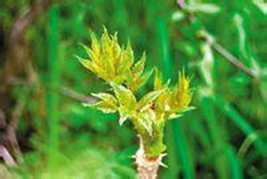 春季萌芽后采摘嫩芽。掰去顶芽后,顶芽下部的 1-5 个侧芽或顶芽的副芽萌发。因此可采摘多次,最好以 2 - 3 次为适宜,不要多次的采摘, 以免累树,嫩芽以 10 - 15 厘米,叶片尚未展开为宜,侧芽叶片展开早,可在 5 - 10 厘米时采摘,采后放于筐内即可。